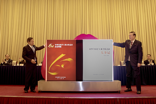會議還舉行了中華全國手工業(yè)合作總社60周年紀(jì)念畫冊、大事記發(fā)行儀式。中華全國手工業(yè)合作總社主任張崇和、會社老領(lǐng)導(dǎo)陳士能共同為畫冊、紀(jì)念冊揭牌。